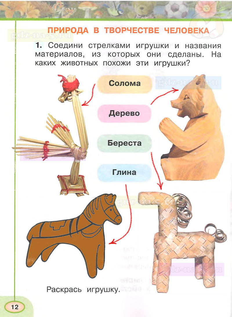 Подробные ответы к заданиям, расположенным на 12 странице 1 части рабочей тетради по окружающему миру авторов Плешаков А.А., Новицкая М.Ю. для учащихся 1 класса.