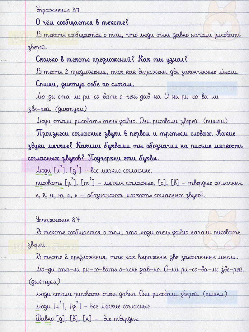 Подробные ответы к 87 упражнению учебника по русскому языку автора Т.Г. Рамзаева для учащихся 1 класса.
