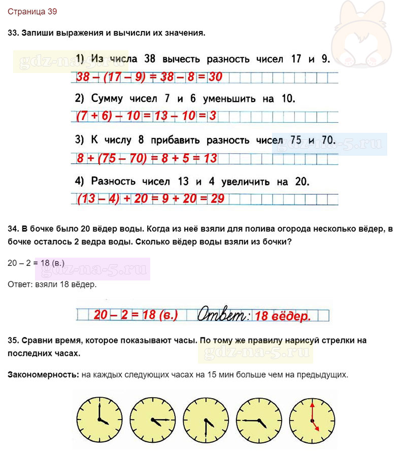 Подробные ответы к заданиям, расположенным на 39 странице 1 части учебника по математике авторов М.И. Моро, С.И. Волкова для учащихся 2 класса.