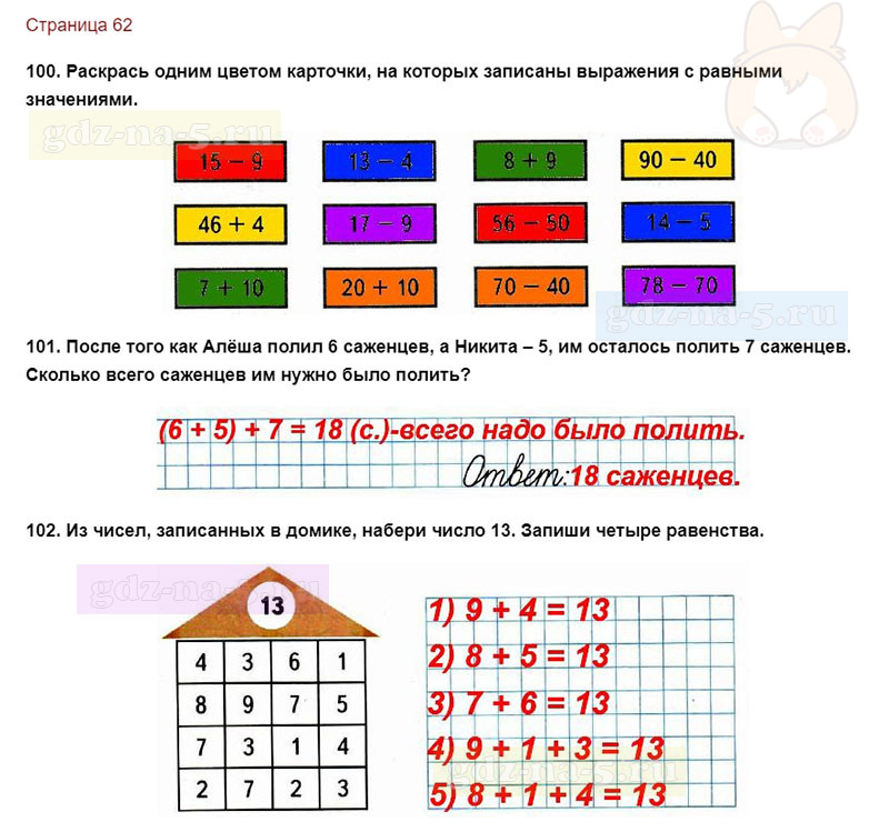 Подробные ответы к заданиям, расположенным на 62 странице 1 части учебника по математике авторов М.И. Моро, С.И. Волкова для учащихся 2 класса.