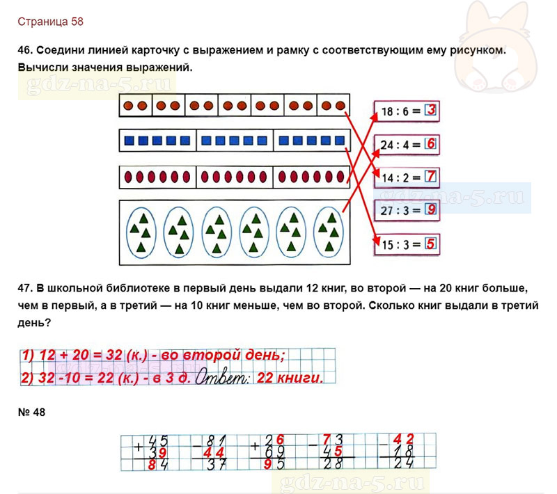 Подробные ответы к заданиям, расположенным на 58 странице 2 части учебника по математике авторов М.И. Моро, С.И. Волкова для учащихся 2 класса.