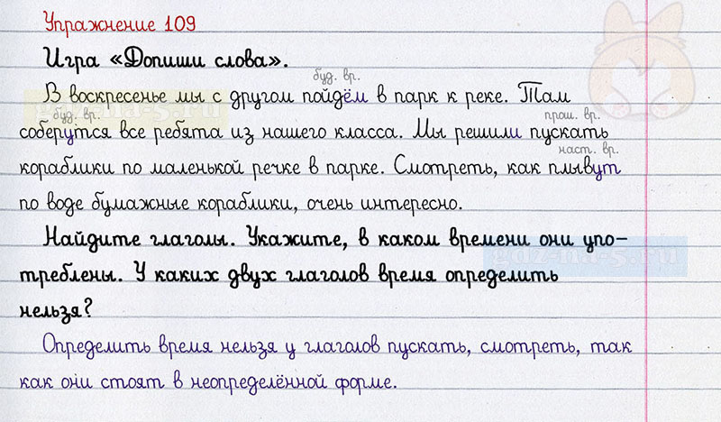 Подробные ответы к 109 упражнению 2 части рабочей тетради по русскому языку авторов Л. Ф. Климановой, Т. В. Бабушкиной для учащихся 3 класса.