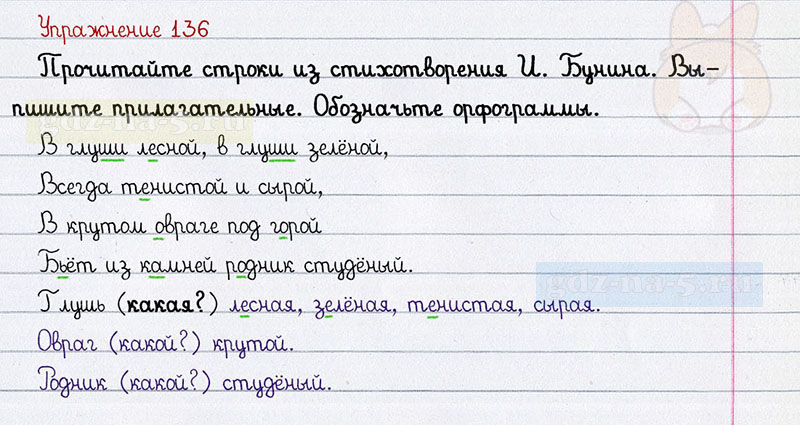 Подробные ответы к 136 упражнению 2 части рабочей тетради по русскому языку авторов Л. Ф. Климановой, Т. В. Бабушкиной для учащихся 3 класса.